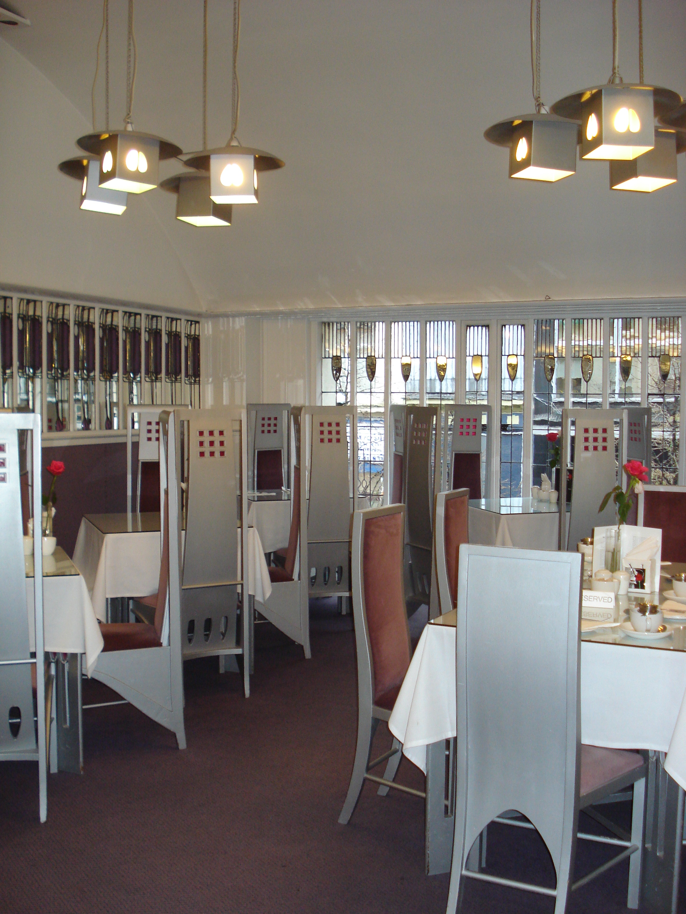 You can still visit the Willow Tearooms in Sauchiehall Street (formerly Miss Cranston’s) and admire Charles Rennie Mackintosh’s De-Luxe Room with its distinctive high-back chairs, where I set some parts of my story.